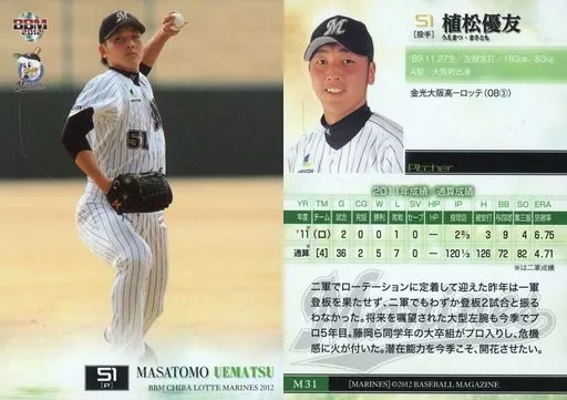 Japanese title: BBM/レギュラーカード/BBM2012 千葉ロッテマリーンズ M31 [レギュラーカード] : 植松優友