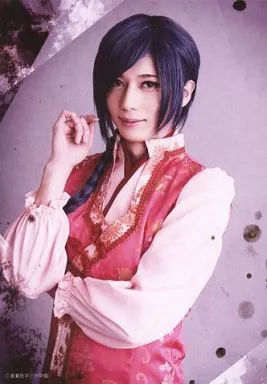 Japanese title: 生写真(男性)/俳優 染谷俊之(柳宿)/上半身・キャラクターショット・衣装ピンク・赤・右手上げ/舞台「ふしぎ遊戯」公式ブロマイド