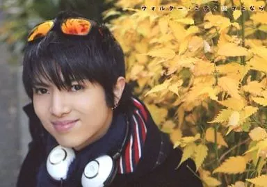 Japanese title: 生写真(男性)/俳優 齋藤ヤスカ/横型・バストアップ・衣装黒・サングラス・ヘッドフォン・口閉じ・左向き・植物/舞台「ウォルター・ミティにさよなら」