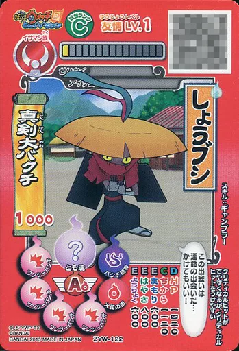 Japanese title: 妖怪ウォッチデータカードダス/ランクC/イサマシ族/妖怪ウォッチ ともだちウキウキペディア ウキウキバスターズパック ZYW-122:しょうブシ