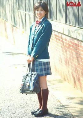 Japanese title: 生写真(女性)/女優 南沢奈央/全身・制服青白・リボン赤・両手バッグ・体左向き/「BOMB」特典生写真