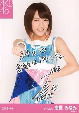 Japanese title: 生写真(AKB48・SKE48)/アイドル/AKB48 高橋みなみ/印刷サイン・メッセージ入り/「2015.04.08」/AKB48 2015年4月度 生誕記念Tシャツ 特典生写真