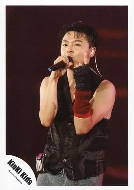 Japanese title: 生写真(ジャニーズ)/アイドル/Kinki Kids KinKi Kids/堂本剛/ライブフォト・膝上・衣装黒・左向き・右手マイク・左手人差し指立て・背景黒/公式生写真