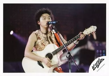 Japanese title: 生写真(ジャニーズ)/アイドル/Kinki Kids KinKi Kids/堂本剛/ライブフォト・横型・衣装茶色・白・右向き・ギター白・スタンドマイク・背景黒/公式生写真