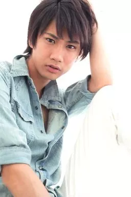 Japanese title: 生写真(男性)/俳優 馬場良馬/上半身・衣装青・デニムシャツ・白・左手頭・足立て・背景白・ポストカードサイズ/生写真