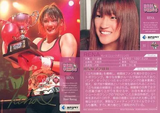 Japanese title: BBM/レギュラーカード/BBM2009 REAL VENUS 31[レギュラーカード]:RENA[シュートボクシング](金箔押しサイン入り)(/200)