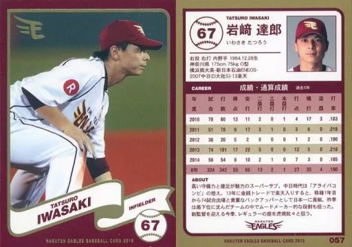 Japanese title: スポーツ/レギュラーカード/東北楽天ゴールデンイーグルス ベースボールカード2015 57 [レギュラーカード] : 岩崎達郎