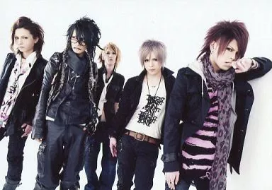 Official photo (Male) / visual kei band / Vistlip Vistlip / Assembly (5 persons) / Horizontal / Above the knees / Costume / Black / White / Pink / Chi / Left hand mouth / Photo of "SINDRA" artist