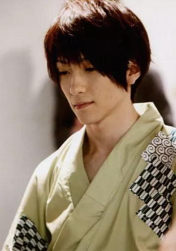 Japanese title: 生写真(男性)/俳優 鈴木拡樹(兼太)/バストアップ・衣装鶯色・着物・左向き・伏せ目/舞台「SAMURAI挽歌2012 ~房州幕末編~」