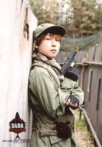 Official photo (male) / Voice actor Shinnosuke Tachibana / Upper Body / Costume Green / Right Hand Gun / Left Hand Knife / Body Facing Right / "ANI-1269" / DVDs "SABA SURVIVAL GAME SEASON II #2 [Animate Limited Edition]" Enclosed Special Bromides