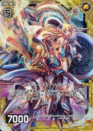 Japanese title: ゼクス/UC/ゼクス/白/第14弾『断罪の白焔弓』 B14-049[UC]:イヴィルベイン ハルラーサ(ホログラムレア)