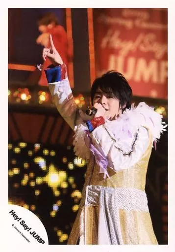 Japanese title: 生写真(ジャニーズ)/アイドル/Hey! Say! JUMP Hey! Say! JUMP/有岡大貴/ライブフォト・上半身・衣装金・羽・右手指差し上・左手マイク・体左向き・目線正面/公式生写真