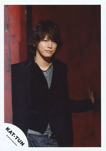 Japanese title: 生写真(ジャニーズ)/アイドル/KAT-TUN KAT-TUN/亀梨和也/上半身・衣装黒・左手壁・壁赤・右向き・口閉じ・背景赤/公式生写真