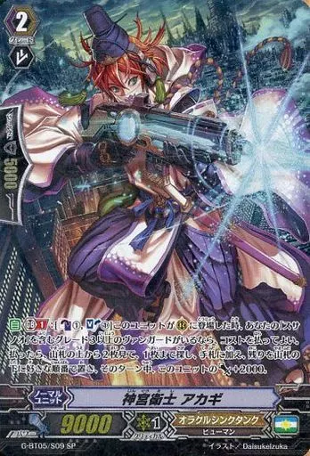 Japanese title: ヴァンガード/SP/ノーマルユニット/オラクルシンクタンク/ヴァンガードG ブースターパック 第5弾「月煌竜牙」 G-BT05/S09[SP]:神宮衛士 アカギ