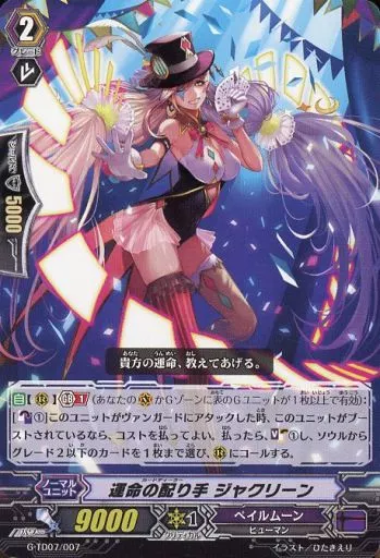 Japanese title: ヴァンガード/TD/ノーマルユニット/ペイルムーン/ヴァンガードG トライアルデッキ「弧月の奇術師」 G-TD07/007[TD]:運命の配り手 ジャクリーン