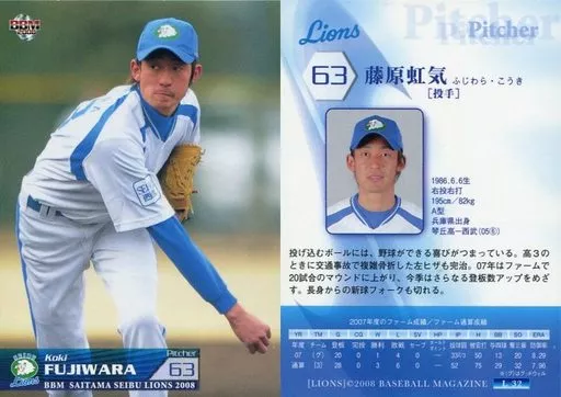 Japanese title: BBM/レギュラーカード/BBM2008 西武ライオンズ L32 [レギュラーカード] : 藤原虹気