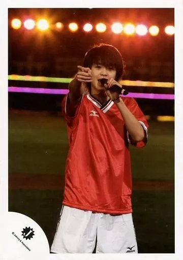 Japanese title: 生写真(ジャニーズ)/アイドル/Hey! Say! JUMP Hey! Say! JUMP/有岡大貴/ライブフォト・膝上・ユニフォーム赤白・右手指差し・左手マイク/公式生写真
