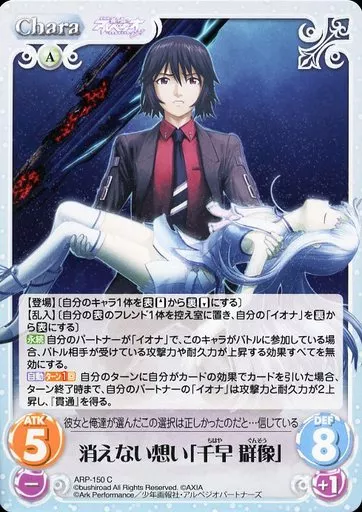 Japanese title: カオス/C/Chara/風/ブースターパック 劇場版 蒼き鋼のアルペジオ ‐アルス・ノヴァ‐ ARP-150[C]:消えない想い「千早 群像」