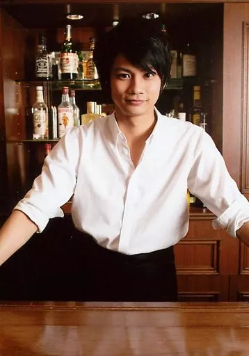 Japanese title: 生写真(男性)/俳優 馬場良馬/上半身・シャツ白・両手広げ・カウンター/「2013年 馬会vol.1」ブロマイド