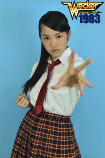 Japanese title: 生写真(女性)/アイドル/アイドリング!!! アイドリング!!!/玉川来夢/膝上・衣装白・ネクタイ赤・制服・右手グー・左手パー・口閉じ・背景青・ポストカードサイズ/舞台「時空警察ヴェッカー1983」生写真