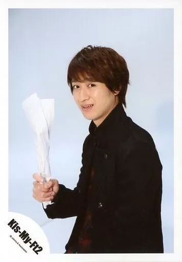 Japanese title: 生写真(ジャニーズ)/アイドル/Kis-My-Ft2 Kis-My-Ft2/宮田俊哉/上半身・衣装黒赤・右手紙・体左向き・背景水色/「DREAM BOYS 2015」パンフ&グッズ/公式生写真