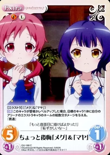 Japanese title: カオス/C/Extra/火光/ブースターパック「ご注文はうさぎですか??」 GU-168[C]:ちょっと後悔「メグ」&「マヤ」
