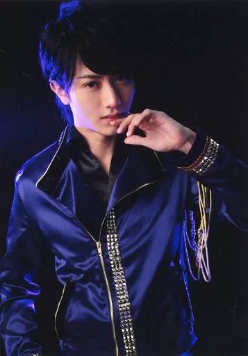 Japanese title: 生写真(男性)/俳優 太田基裕(ブルーム)/上半身・衣装紫・右向き・左手口元・背景黒/舞台「CLUB SLAZY The 2nd invitation~Sapphire~」生写真Aセット