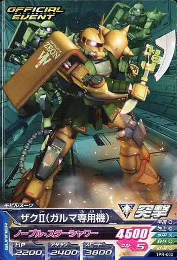 Japanese title: ガンダムトライエイジ/PR/モビルスーツ/「スペシャルカードパック13」 TPR-002[PR]:ザクII(ガルマ専用機)