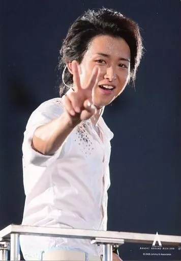 Japanese title: 生写真(ジャニーズ)/アイドル/嵐 嵐/大野智/ライブフォト・上半身・衣装白・右手ピース/ARASHI AROUND ASIA 2008