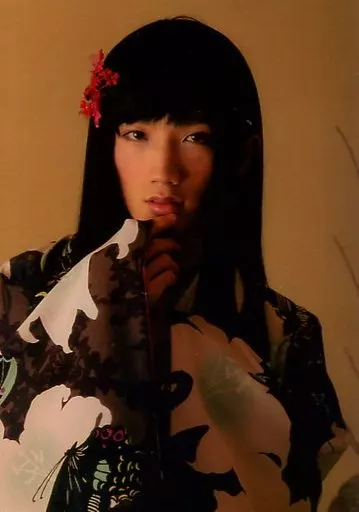 Japanese title: 生写真(男性)/俳優 廣瀬大介(百合)/上半身・着物黒茶白・右手顎・背景茶/舞台「極上文學 夢十夜」ブロマイド