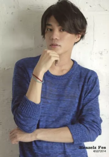 Japanese title: 生写真(男性)/俳優 菊池卓也/上半身・衣装青・右手顎・背景白/Heazelz Festival 2014~みんなでLet it go~