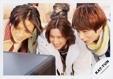 Japanese title: 生写真(ジャニーズ)/アイドル/KAT-TUN KAT-TUN/田中・田口・中丸/横型・バストアップ・前屈み・センター田口.衣装白・モニターを見る/公式生写真