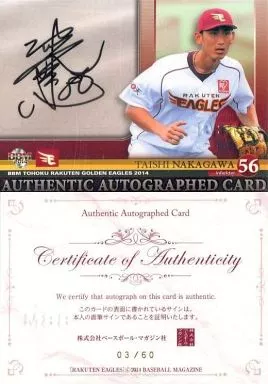 BBM / Special Insert Card / Handwritten Signature Card / BBM2014 Tohoku Rakuten Golden Eagles [Special Insert Card] : Taishi Nakagawa (with handwritten signature) (/ 60)