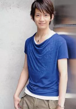 Japanese title: 生写真(男性)/俳優 辻本祐樹/膝上・衣装青・ネックレス・笑顔・背景グレー/イベント限定物販生写真