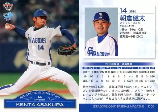 Japanese title: BBM/レギュラーカード/BBM2011 中日ドラゴンズ D06 [レギュラーカード] : 朝倉健太