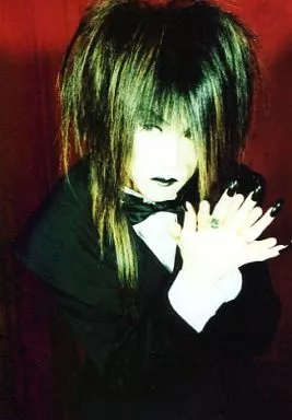Japanese title: 生写真(男性)/ヴィジュアル系バンド Kein(カイン)/ゆきの/上半身・衣装黒・両手合わせ・目線左・背景赤/アーティスト生写真