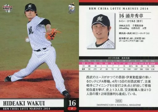 Japanese title: BBM/レギュラーカード/BBM2014 千葉ロッテマリーンズ M08 [レギュラーカード] : 涌井秀章