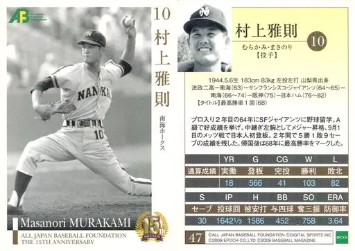 Japanese title: スポーツ/レギュラーカード/南海ホークス/日本プロ野球OBクラブ設立15周年記念 カードセット 第1集 47 [レギュラーカード] : 村上雅則