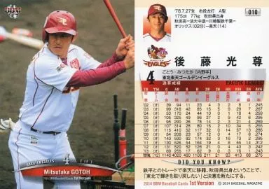 Japanese title: BBM/レギュラー/東北楽天ゴールデンイーグルス/BBM2014 ベースボールカード 1stバージョン 010[レギュラー]:後藤光尊