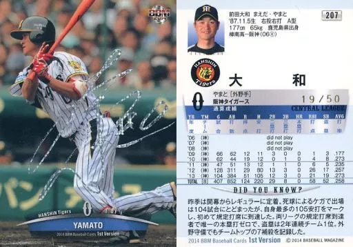 Japanese title: BBM/レギュラー/阪神タイガース/BBM2014 ベースボールカード 1stバージョン 207[レギュラー]:大和(ホロ箔押しサイン入り)(/50)