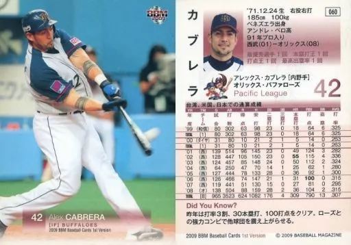Japanese title: BBM/レギュラーカード/オリックス・バファローズ/BBM2009 ベースボールカード 1stバージョン 060 [レギュラーカード] : カブレラ