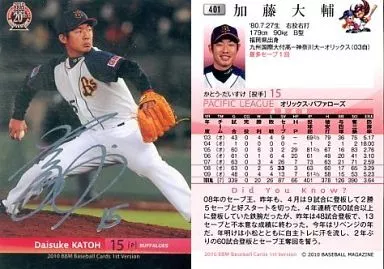 Japanese title: BBM/レギュラー//オリックス・バファローズ/BBM 2010 ベースボールカード 1stバージョン 401[レギュラー]:加藤大輔(銀箔サイン入り)