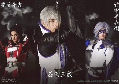 Official photo (male) / actor Nakamura, Otai, Kawasumi (3 persons) / Horizontal, Knee-High, Background Black, Character Cutter Shot, 2L Size / Stage "Sengoku BASARA Samurai Heroes Utage The Birth of Unlucky King x Fuken no Utage"