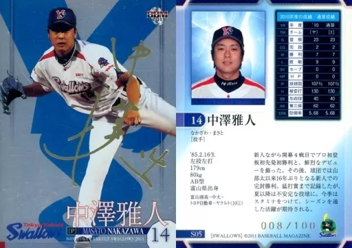 Japanese title: BBM/レギュラー/BBM2011 東京ヤクルトスワローズ S05[レギュラー]:中澤雅人(金箔サイン入り)(/100)