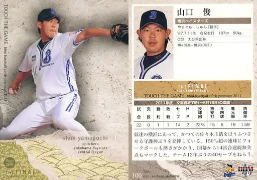 Japanese title: BBM/レギュラー/横浜DeNAベイスターズ/BBM2011 タッチ・ザ・ゲームTHE FINAL-10th Anniversary- 100[レギュラー]:山口俊