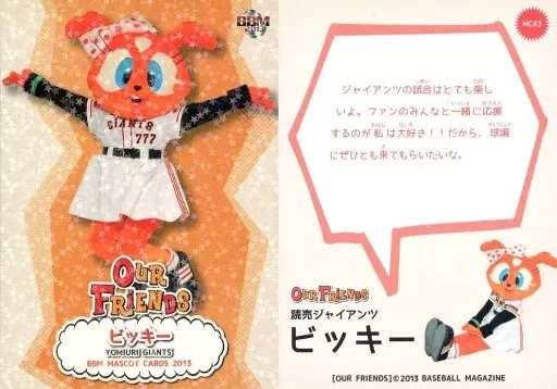 Japanese title: BBM/レギュラー/読売ジャイアンツ/BBM2013 マスコットカード OUR FRIENDS MC43[レギュラー]:ビッキー(キラパラレル版)