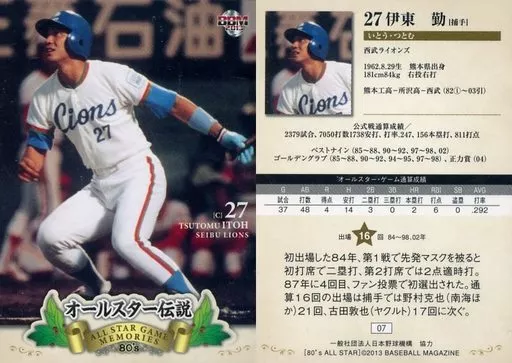 Japanese title: BBM/レギュラー/BBM2013 オールスター伝説 7[レギュラー]:伊東勤