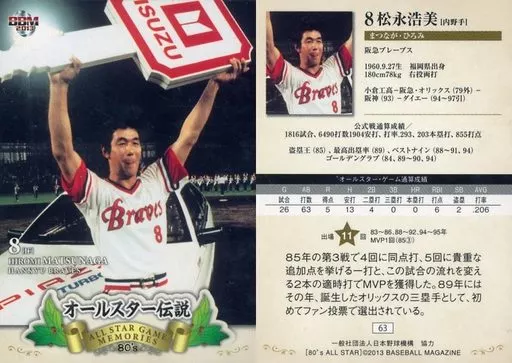 Japanese title: BBM/レギュラー/BBM2013 オールスター伝説 63[レギュラー]:松永浩美