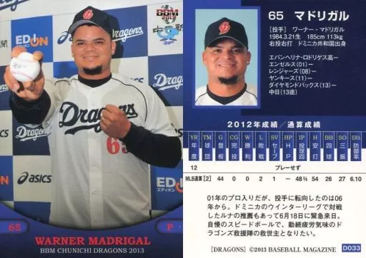 BBM / Regular / BBM2013 Chunichi Dragons D033 [Regular] : Madrigal