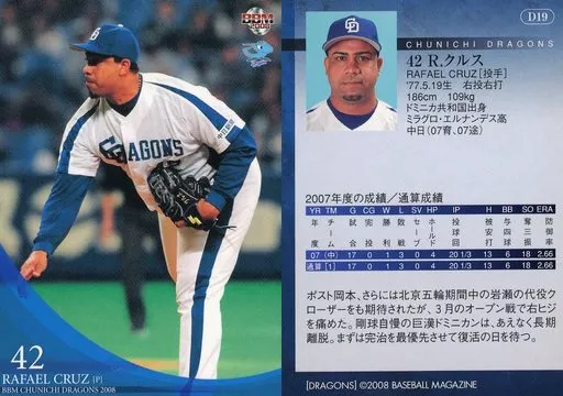 BBM / Regular / BBM2008 Chunichi Dragons D19 Regular : Cruz